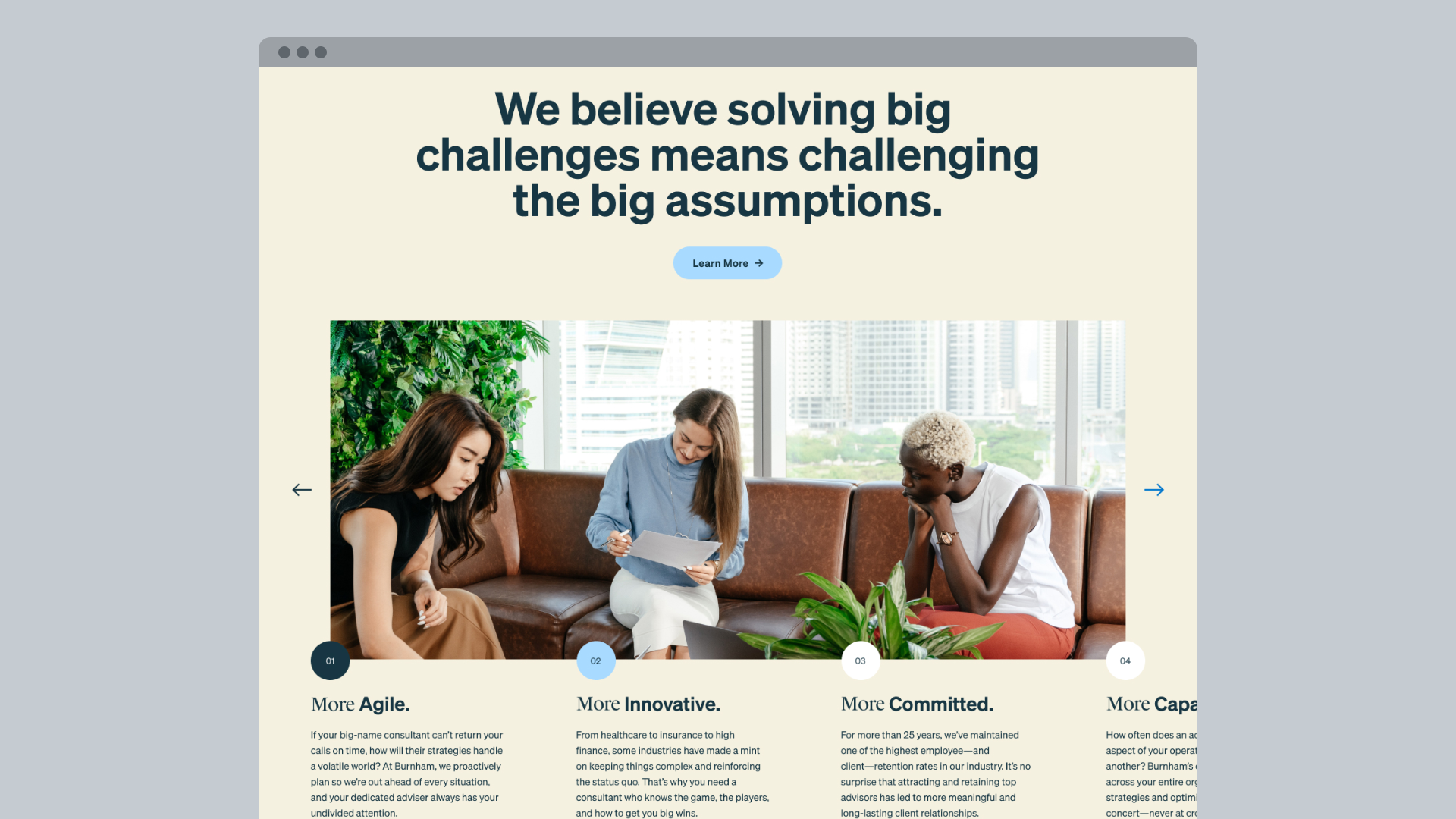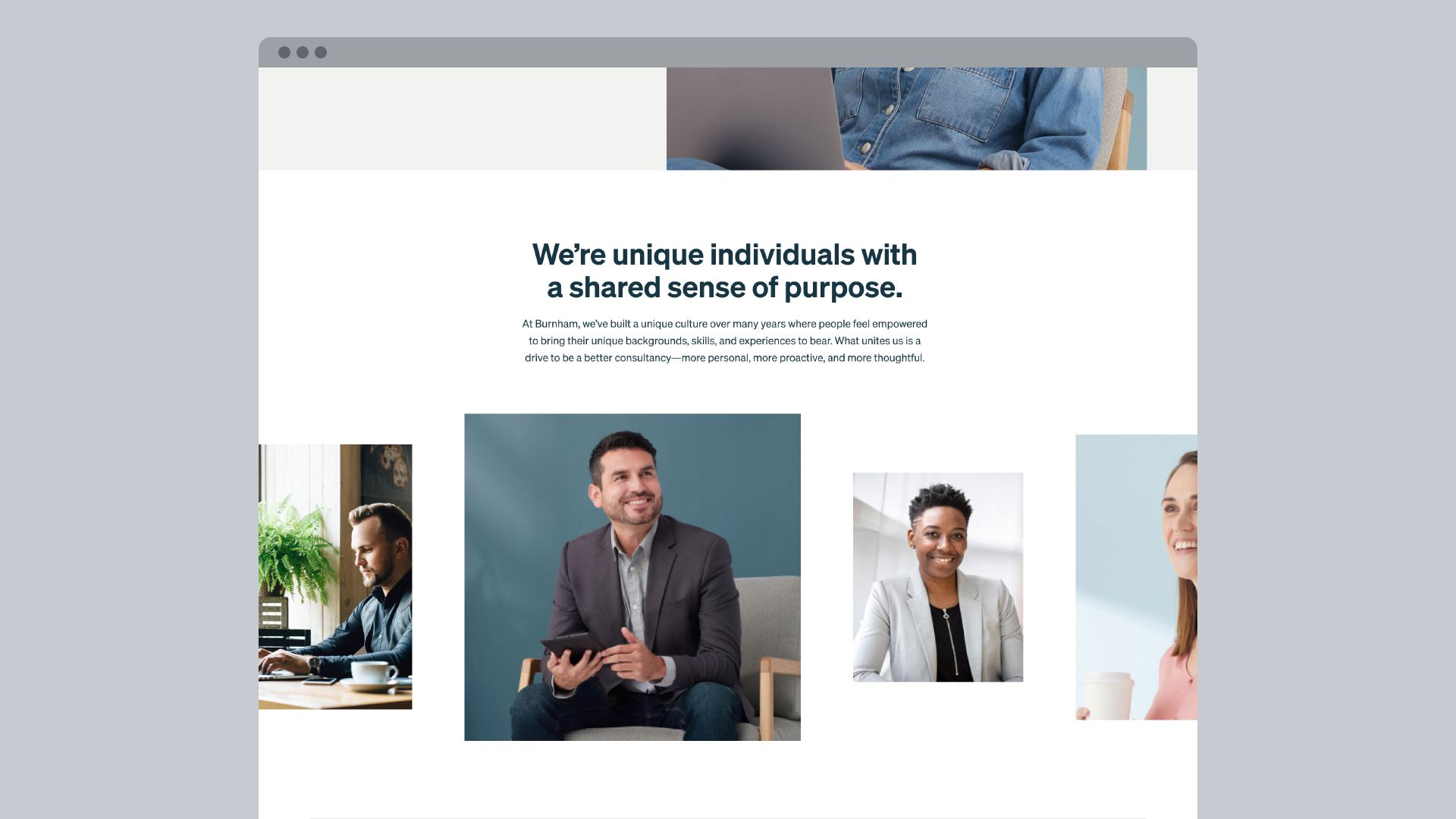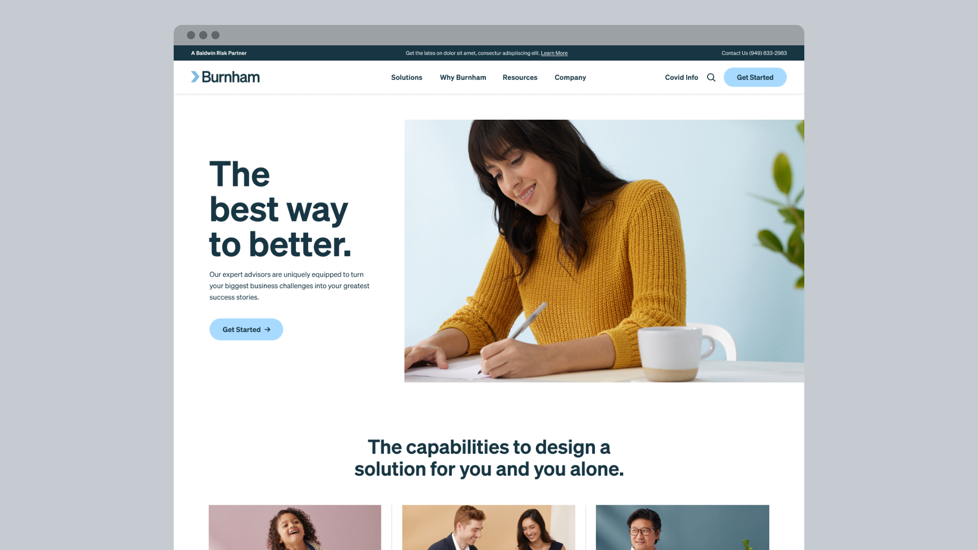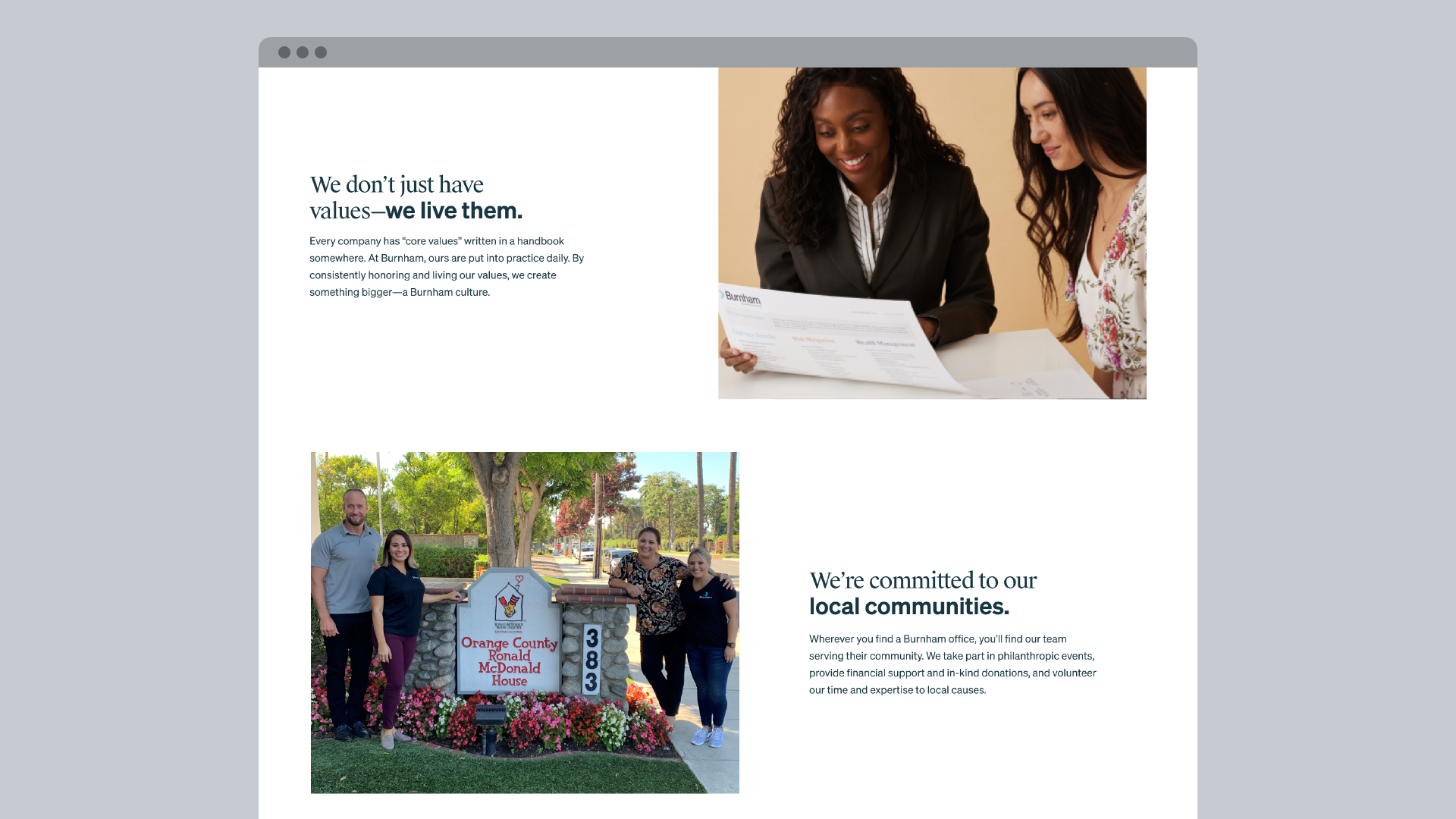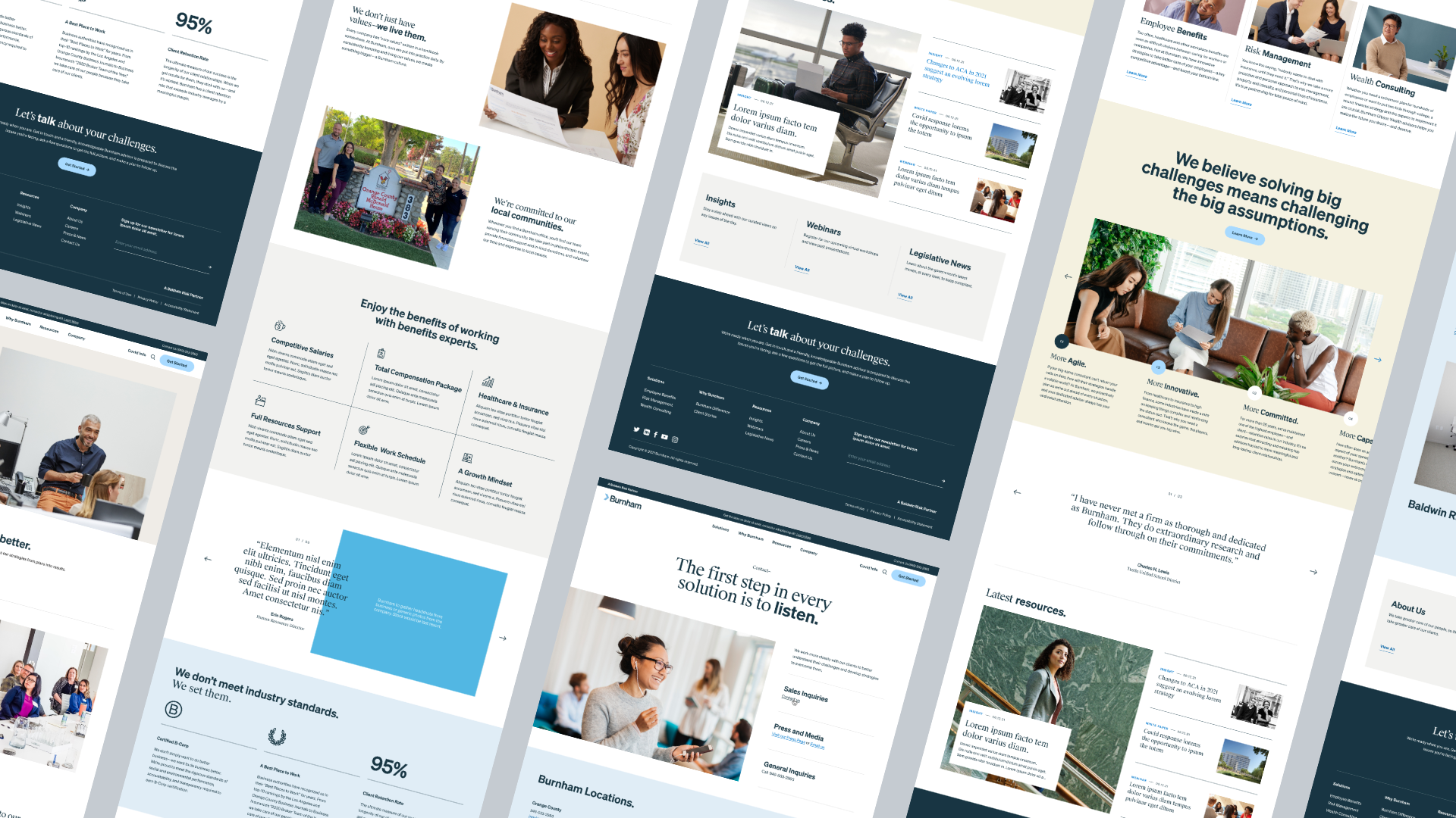 I worked with Burnham Benefits, an advisory firm delivering insurance, risk mitigation, employee benefits, and wealth management for business and individuals, to overhaul their brand art direction. We also did a complete redesign of their website.
