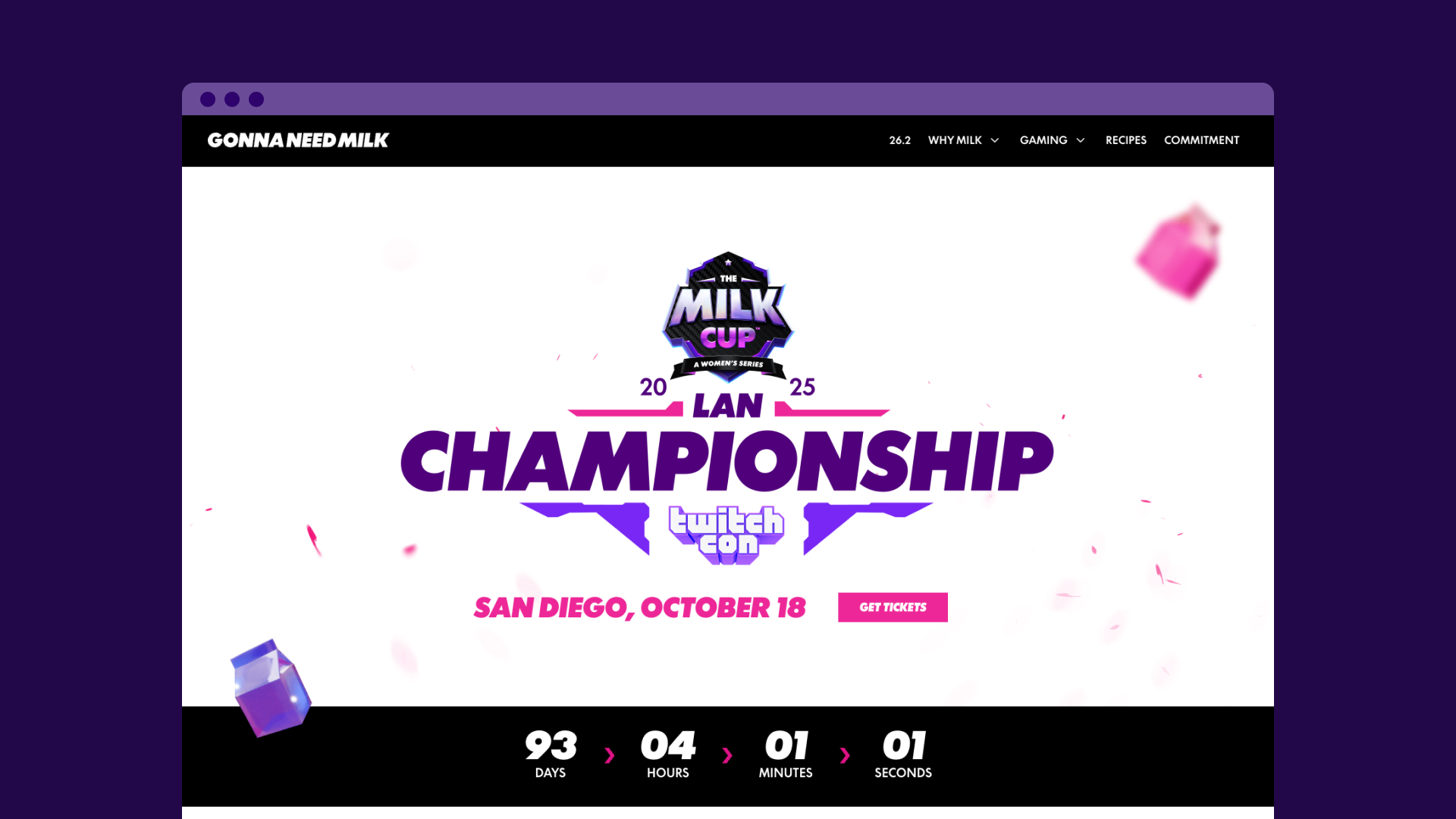 To ensure that audience's understood who The Milk Cup was created by and Milk's mission to level the playing field for women in esports, we created a PSA style video to get the message out. Directly from the actual CEO of MilkPEP—Yin Woon Rani.